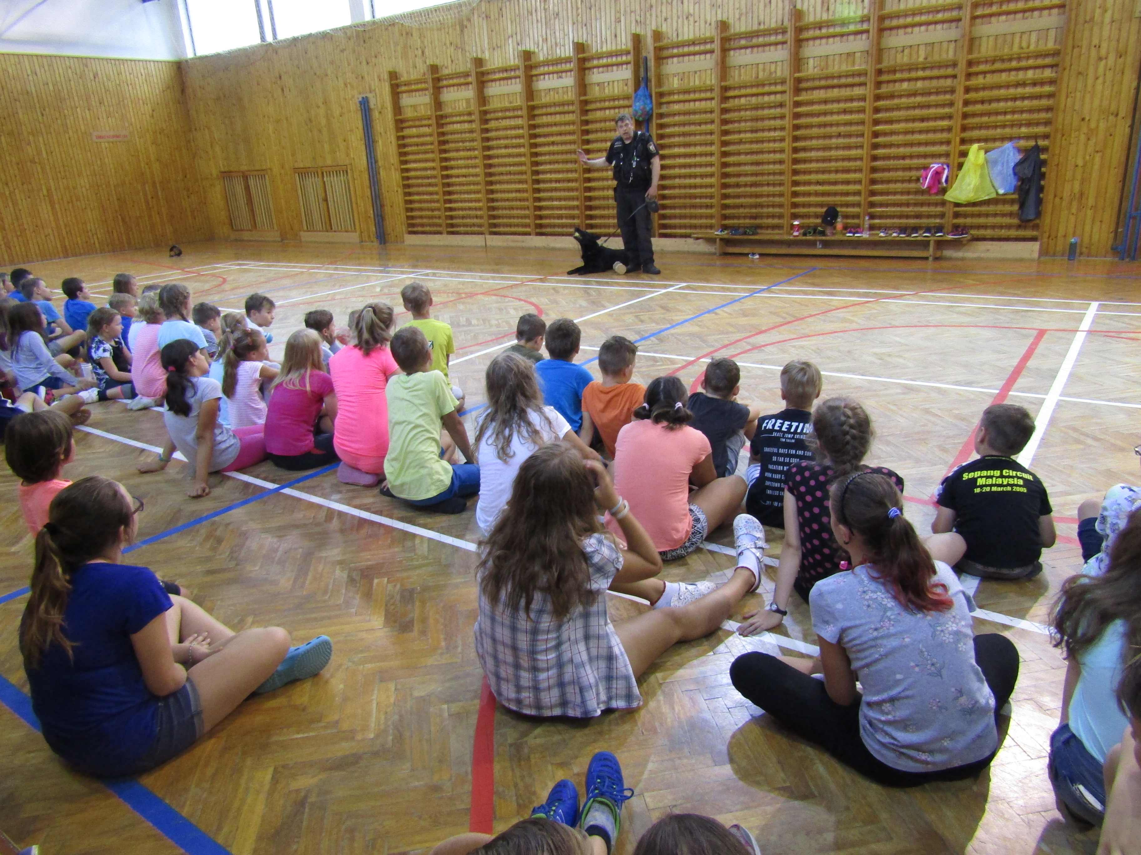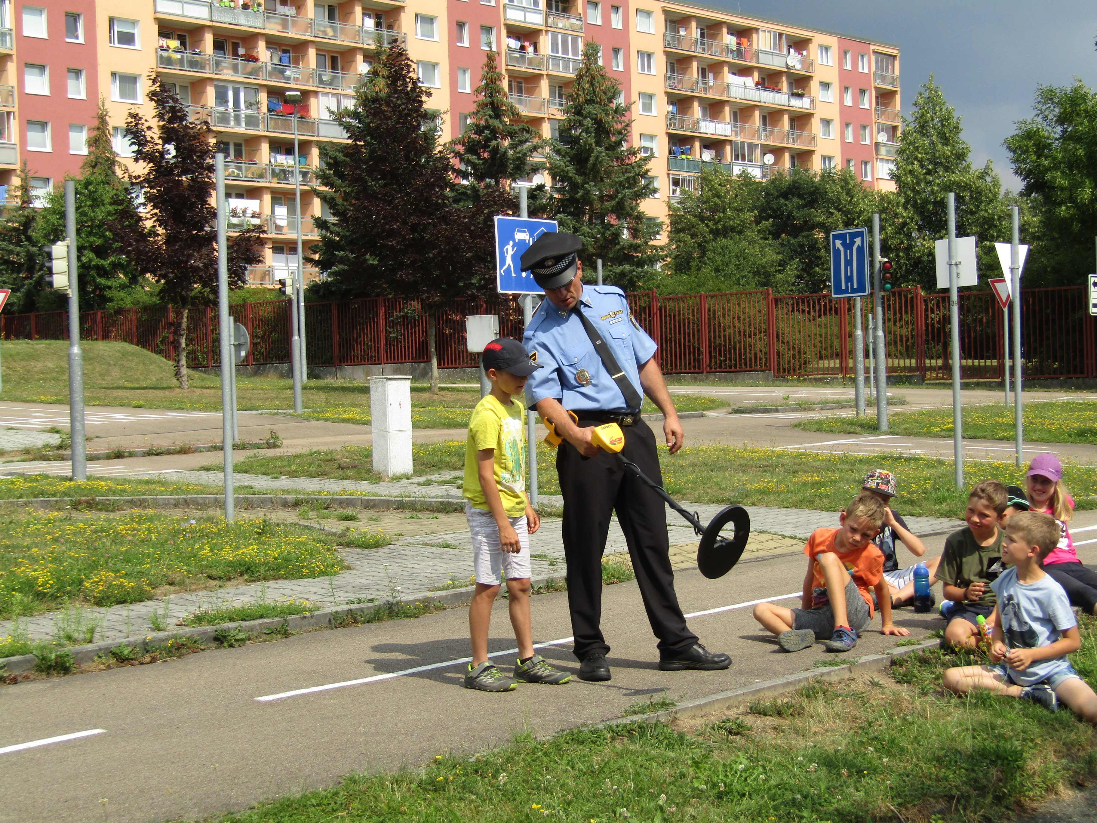 Pro malé táborníky byl připraven bohatý program. Dětem bylo připomenuto několik rad, jak se vyhnout rizikům a nebezpečím, které mohou prázdniny přinášet. Vyzkoušet si v praxi děti také mohly práci s detektorem kovů, jejž strážníci využívají při kontrole dětských hřišť a dopadových ploch. Protože táborníkům přestalo počasí přát a začalo pršet, přesunuli se všichni společně poté do vnitřních prostor, kde jim svou ukázku předvedl psovod se svým služebním psem Grimem. Zpestřit program jim rovněž dorazil i se svým povídáním o odchytu zvířat vedoucí plzeňského útulku.