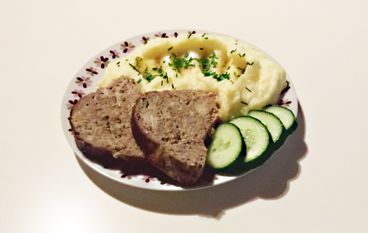 1 kg míchaného mletého masa, 2× rohlík, trochu mléka, 2× cibule, 2× vejce, 4 stroužky česneku, majoránka, sůl, pepř mletý