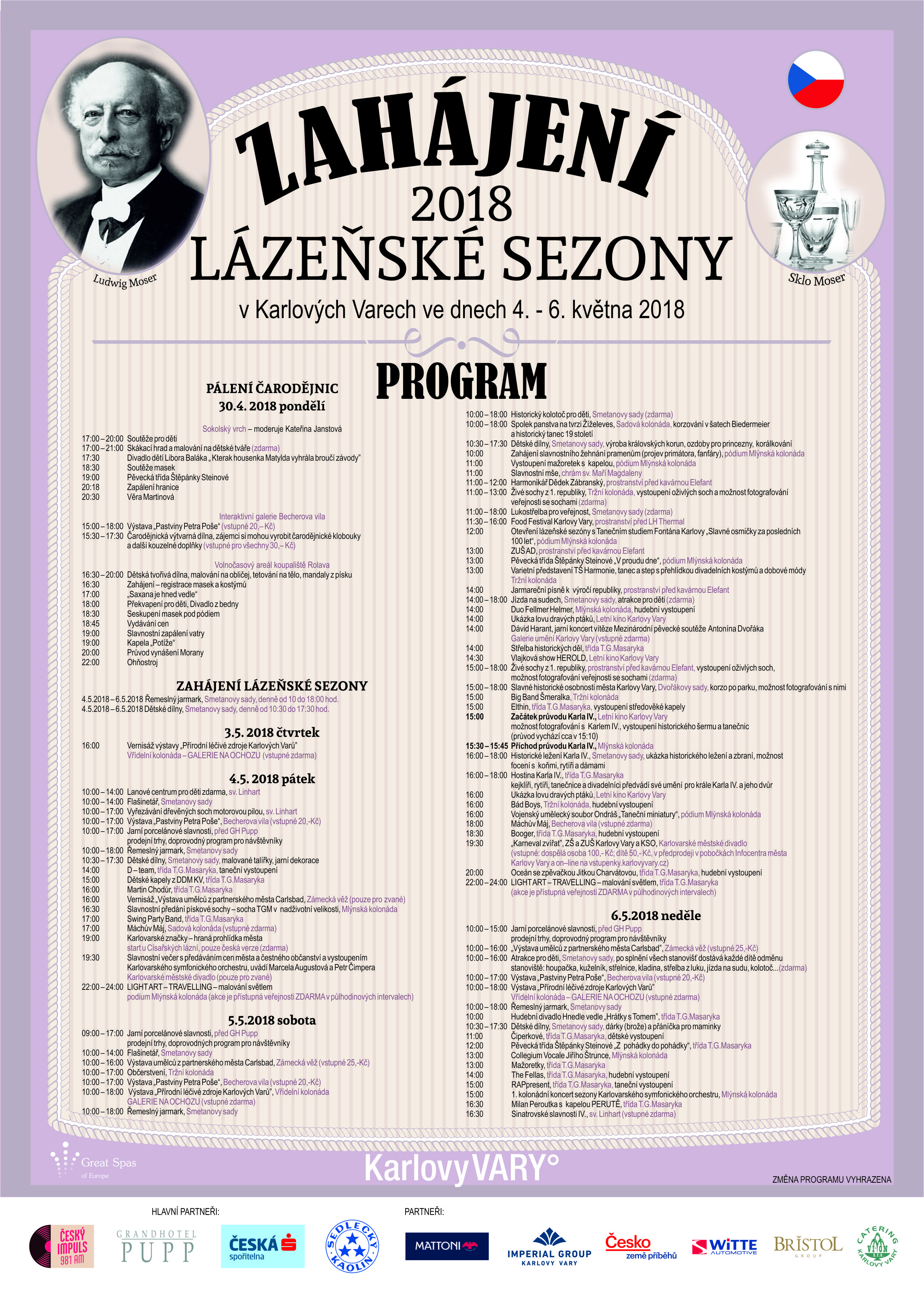 Součástí programu budou i tradiční akce partnerů, tedy Jarní porcelánové slavnosti před Grandhotelem Pupp a Food Festival Karlovy Vary s během číšníků „Vrchní, prchni“.