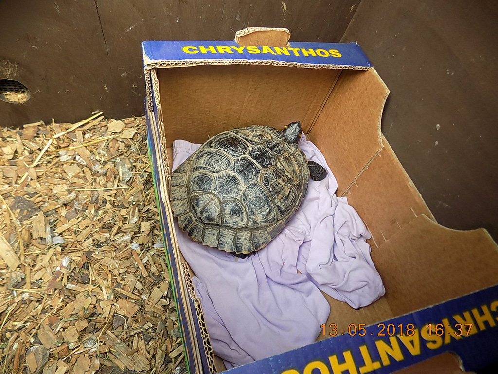 Do záchranné stanice živočichů odvezli také želvu nádhernou. Její nález ohlásil na městskou policii v neděli mladý muž z Rakovnicka. Našel jí na břehu řeky Radbuzy, pod mostem Milénia a nikdo se k ní nehlásil.