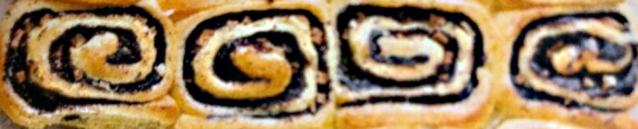 Svaříme mák, cukr, mléko, pomerančovou kůru a šťávu. Zahustíme piškoty dle potřeby. Těsto vyválíme, potřeme náplní, posypeme kostičkami hrušek, posypeme skořicí a zamotáme, poté rozkrájíme na plátky.