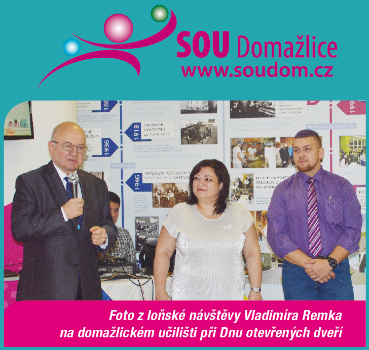 Den otevřených dveří ve Středním odborném učilišti v Domažlicích poctil svou návštěvou první československý kosmonaut Vladimír Remek se svojí manželkou Janou. Pane Remku, jaký pocit si odnášíte z návštěvy domažlického středního odborného učiliště?