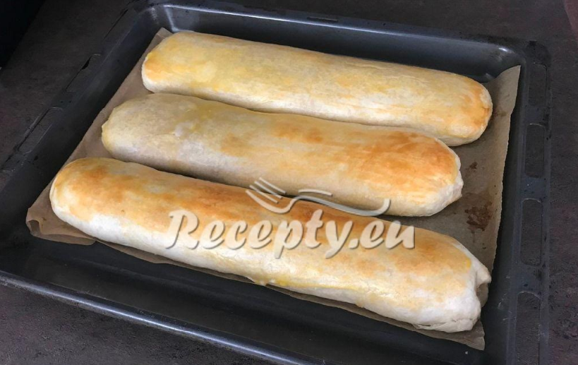 Poté vyválíme placku, posypeme perníkem, jablíčky, skořicí, cukrem, oříšky a rozinkami, zabalíme a upečeme dozlatova.
