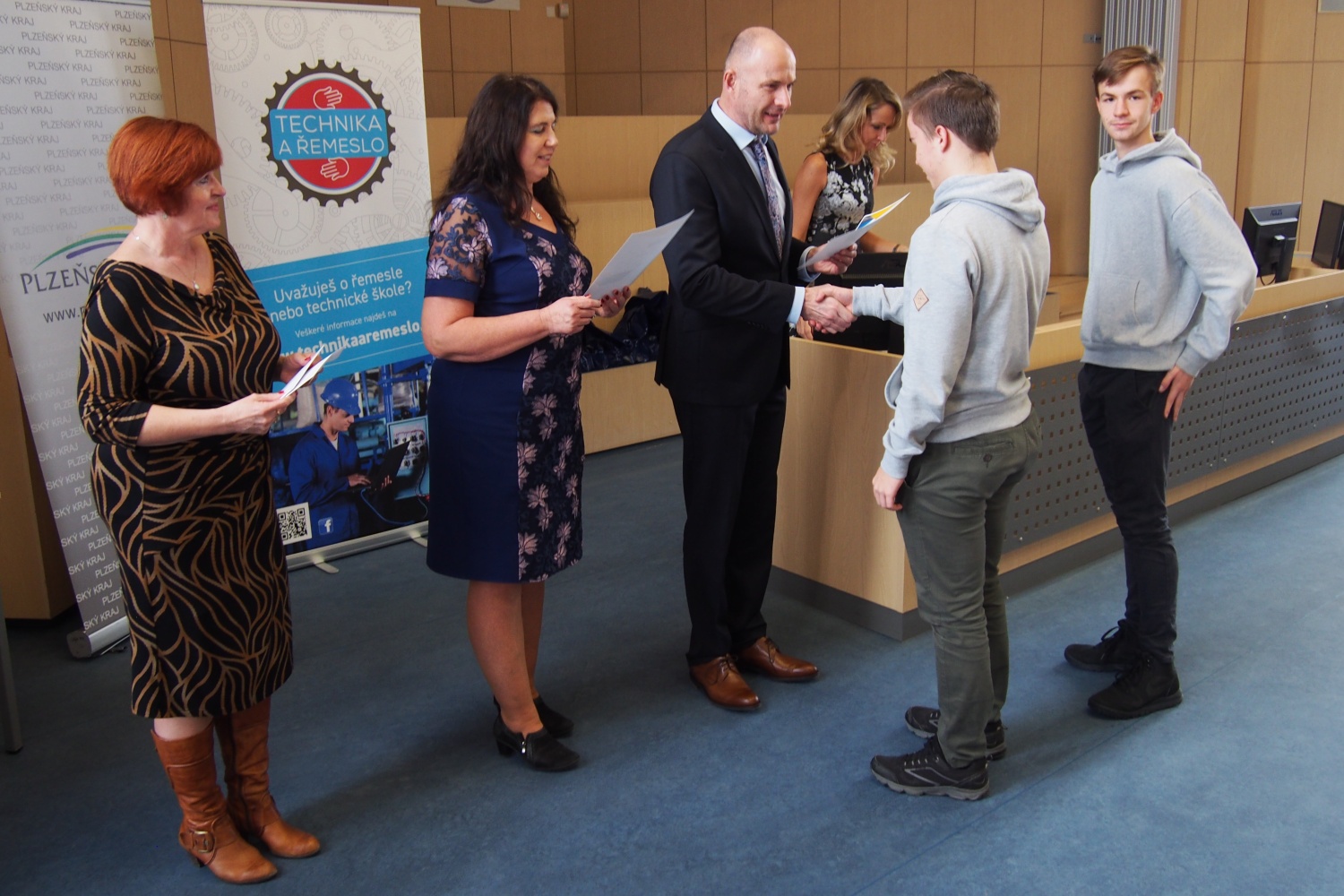 V prostorách Západočeské univerzity v Plzni se dnes uskutečnila prezentace soutěžních prací a slavnostní předávání cen vítězům 6. ročníku soutěže Technická olympiáda Plzeňského kraje. Vítězové převzali ceny z rukou hejtmana Josefa Bernarda a rektora Západočeské univerzity v Plzni Miroslava Holečka.