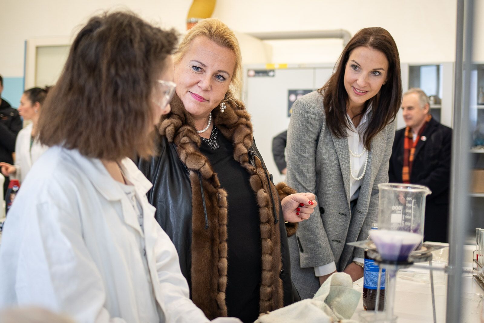 FOTO: Ministryně pro místní rozvoj Klára Dostálová (uprostřed) navštívila v doprovodu ředitelky Úřadu Regionální rady regionu soudržnosti Jihozápad Michaely Šímové (vpravo) město České Budějovice, konkrétně Gymnázium Česká, které využilo dotace z Evropské unie na svůj rozvoj.