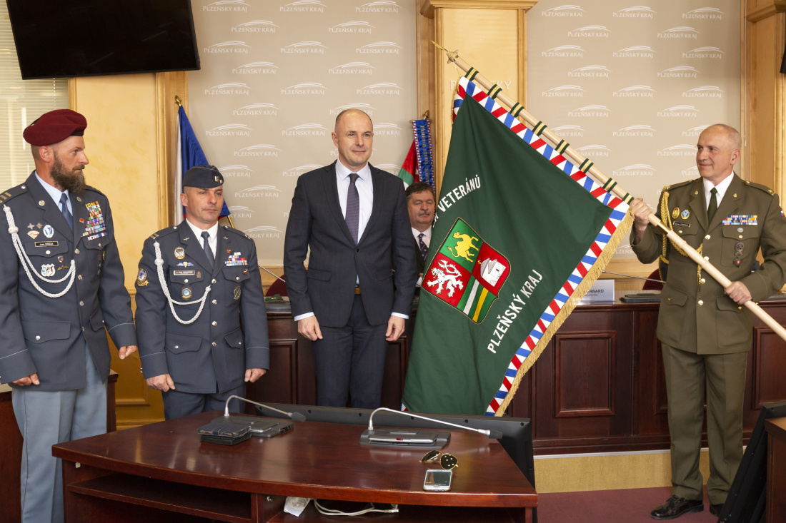 Hejtman Josef Bernard předal na krajském úřadě zástupcům Sdružení válečných veteránů ČR a Krajské organizace Plzeňského kraje vlajku jako symbol hrdinství a zároveň poděkování za jejich účast v bojích za svobodu a za službu vlasti. Plzeňský kraj podpořil finančním příspěvkem výrobu vlajky.