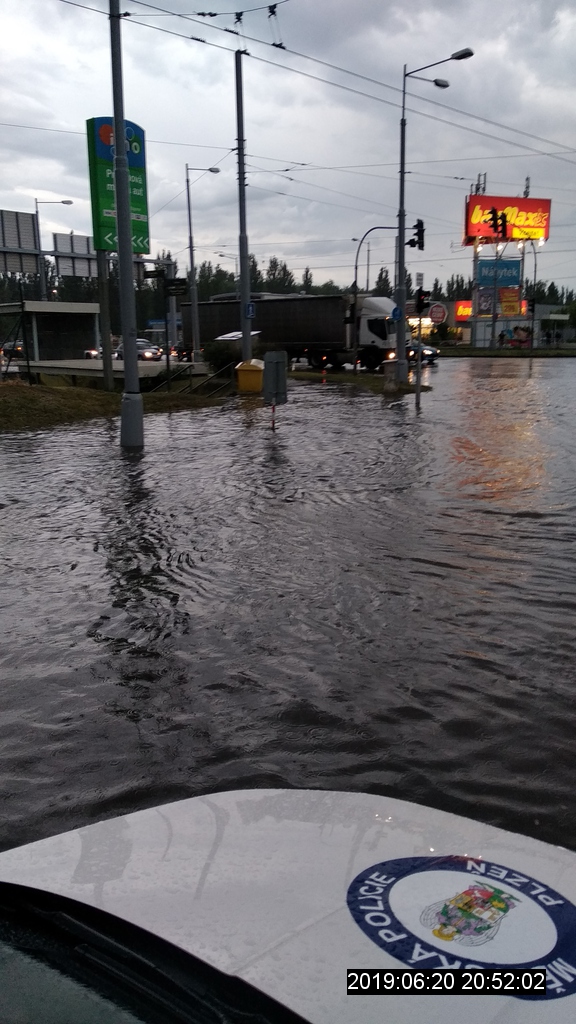 Večerní přívalový déšť způsobil na řadě míst problémy. V jezero například proměnil na Doubravce křižovatku Jateční Rokycanská, včetně přilehlého podchodu.