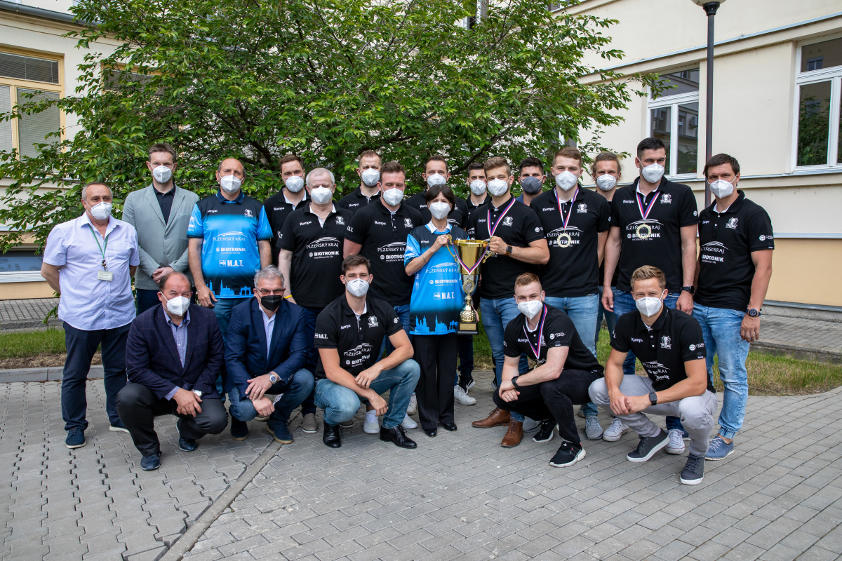 Hejtmanka Ilona Mauritzová a její náměstek Pavel Karpíšek se dnes na krajském úřadě setkali s hráči Talent týmu Plzeňského kraje, který v letošní sezóně získal extraligový titul, v historii klubu již osmý. Jako poděkování za reprezentaci Plzeňského kraje dostali hráči speciální týmový dort a drobný dárek.