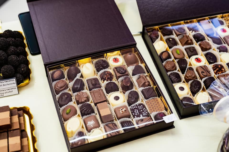 - Prodejní stánky s degustacemi a čokoládovými specialitami