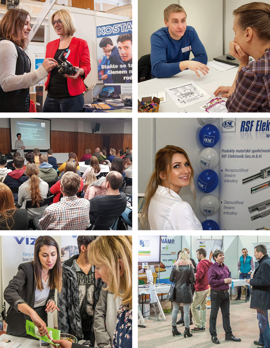 Tradičně je veletrh doprovázen celodenním přednáškovým a poradenským programemNa návštěvníky čeká řada přednášek, poraden i aktivit pro radost. Návštěvníkům poradí pracovní právník, kariéroví poradci pomohou s životopisem a otestují digitální dovednosti, fotografové připraví fotky do životopisů, k dispozici budou i kadeřníci, kosmetičky, testování zrakové kondice, ukázky první pomoci, ergomie správné chůze, hygiena rukou pod UV lampou, ale také se můžete vyfotit s rekvizitami různých povolání.