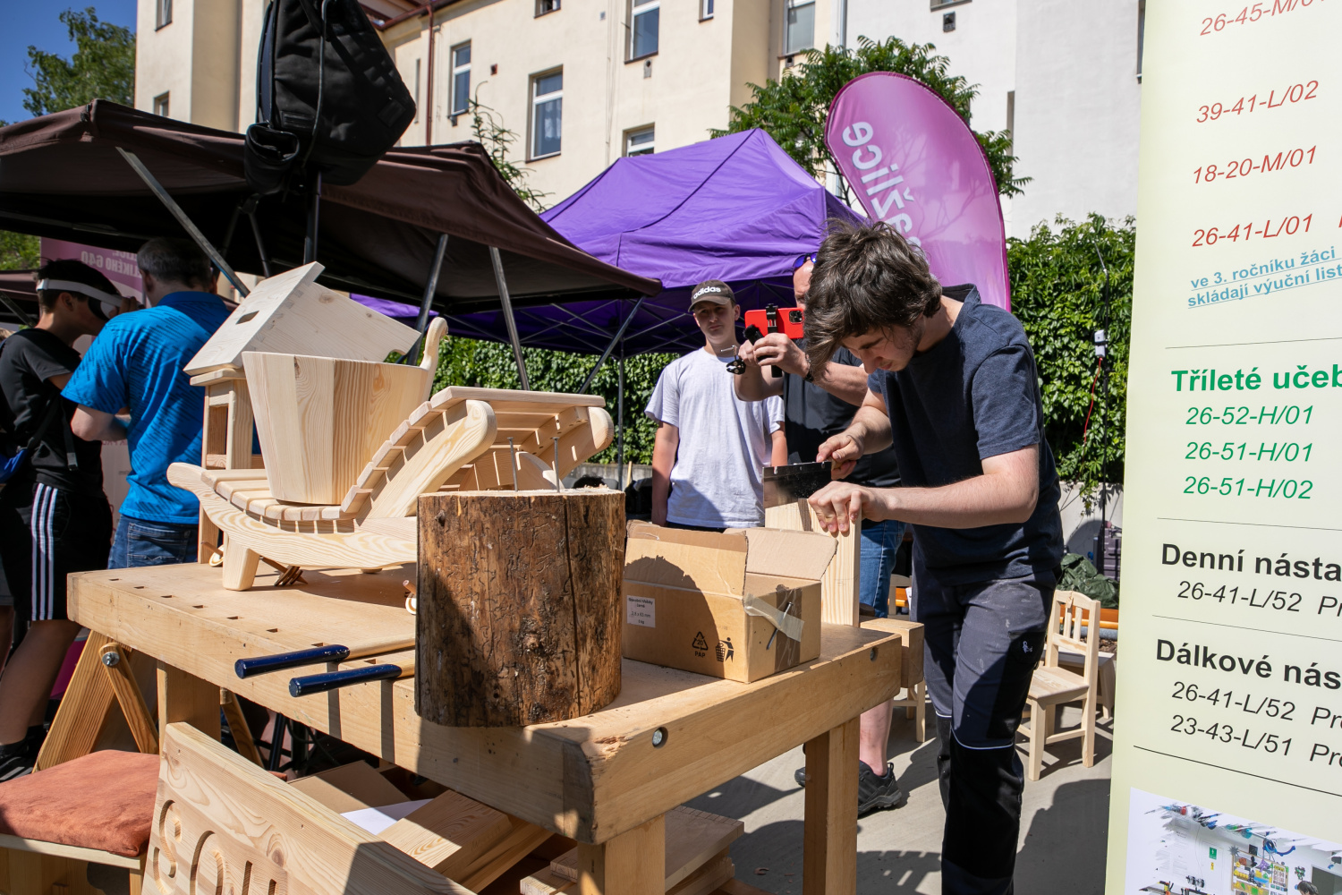 „Každou příležitost, kdy lze představit, jak máme šikovné žáky a studenty napříč krajskými školami, osobně vítám. Když se děti rozhodují, kam půjdou ze základní školy, je nejlepší si na vlastní kůži vyzkoušet něco vyrobit, seznámit se s roboty, které studenti umí sestrojit, a ochutnat to, co naši žáci uvaří a upečou. Já sám jsem si zkusil u stánku oseleckých kovářů vykovat hřebík. A musím uznat, že mě kluci hravě strčili do kapsy,“ říká hejtman Plzeňského kraje Rudolf Špoták. Společně s ním si nádvoří úřadu prošli také jeho náměstkové Petr Vanka a Vladimír Kroc.