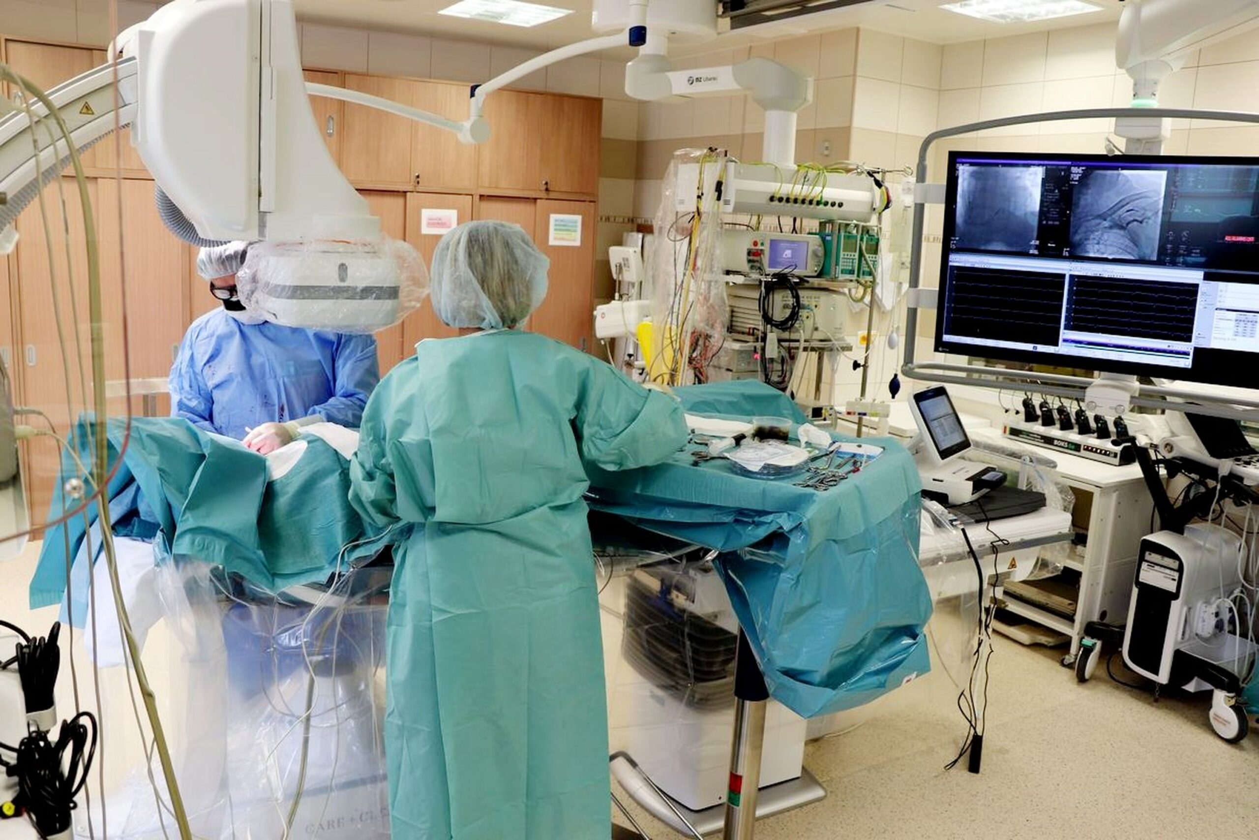 Na nejmodernější angiolince na intervenční kardiologii je mj. velkým bonusem integrovaný software, který napomáhá rozboru CT obrazů a tím k lepší rekonstrukci kořene aorty, aortální chlopně a přístupových cest. Proto je možné pro každého konkrétního pacienta zvolit optimální typ a velikost katetrizačně implantované aortální chlopně. „A to je právě velký posun v rámci těchto život zachraňujících zákroků,“ vysvětluje přednosta Kardiologické kliniky prof. MUDr. Richard Rokyta, Ph.D. „Většina výkonů probíhá u pacientů, kteří jsou při vědomí, v ojedinělých případech je nutná celková anestezie. Kontrastní látka při intervenčních výkonech je aplikována do věnčitých tepen, kam jsou katetry zavedené nejčastěji cestou radiální tepny (palcová strana předloktí),“ popisuje zákroky profesor Rokyta.