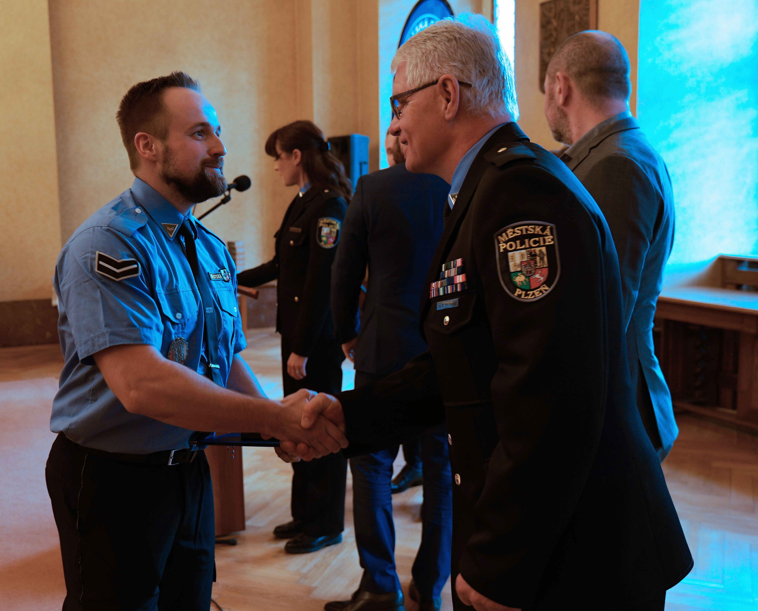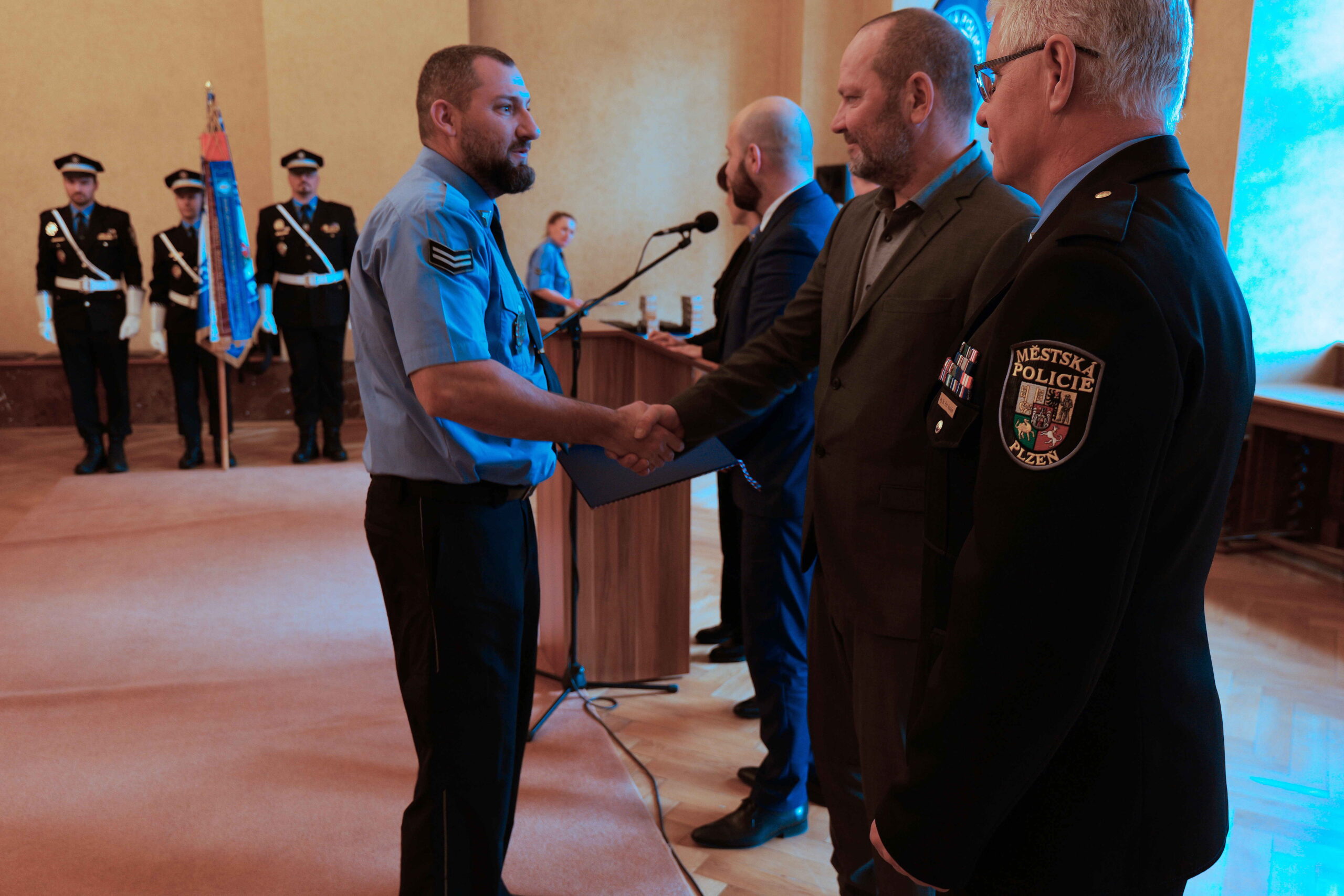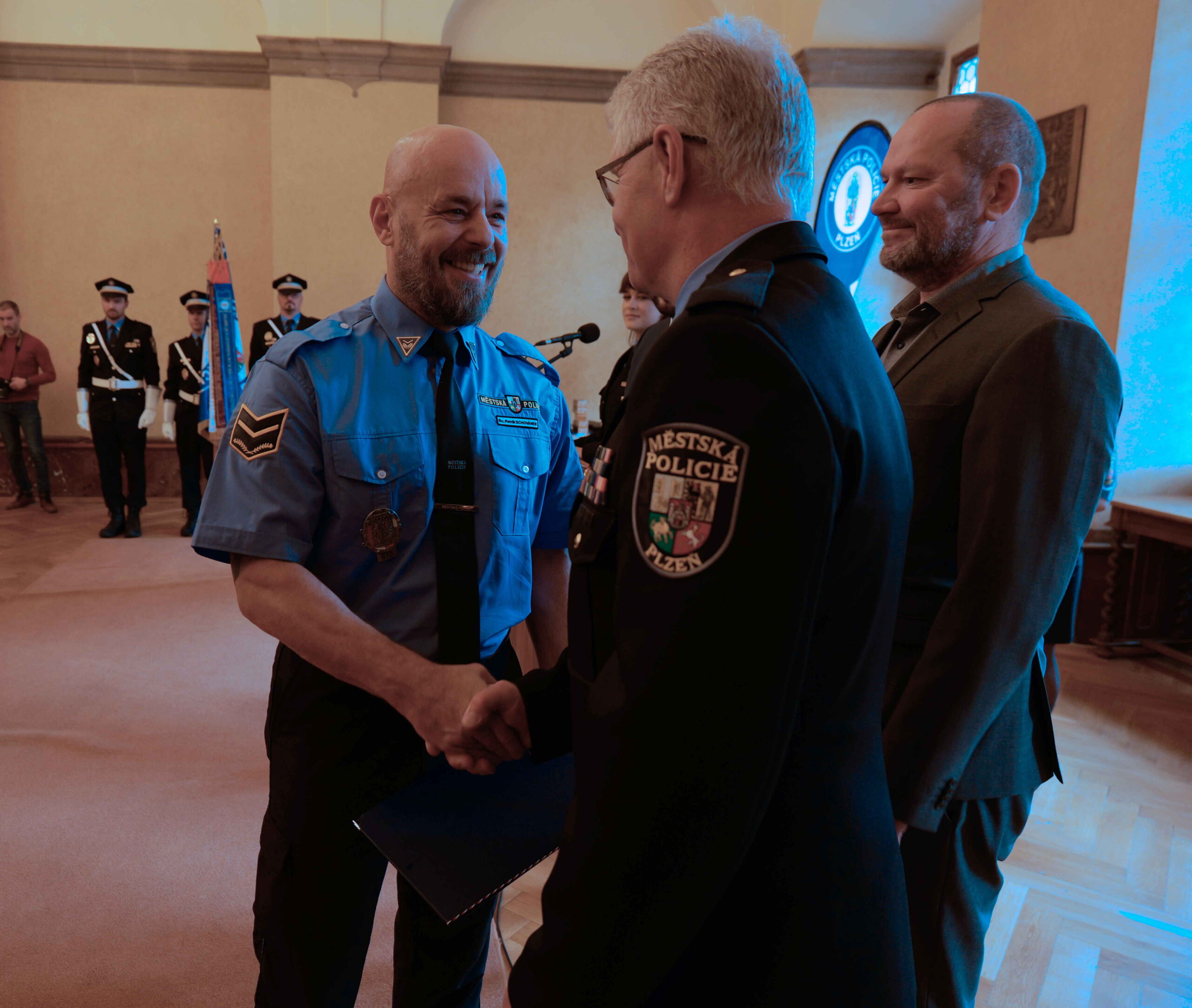Pořádková jednotka Městské policie Plzeň slaví významné jubileum. Při příležitosti 15. výročí jejího vzniku se všichni členové sešli v Obřadní síni plzeňské radnice k předání pamětních listů, plaket a dalších ocenění.