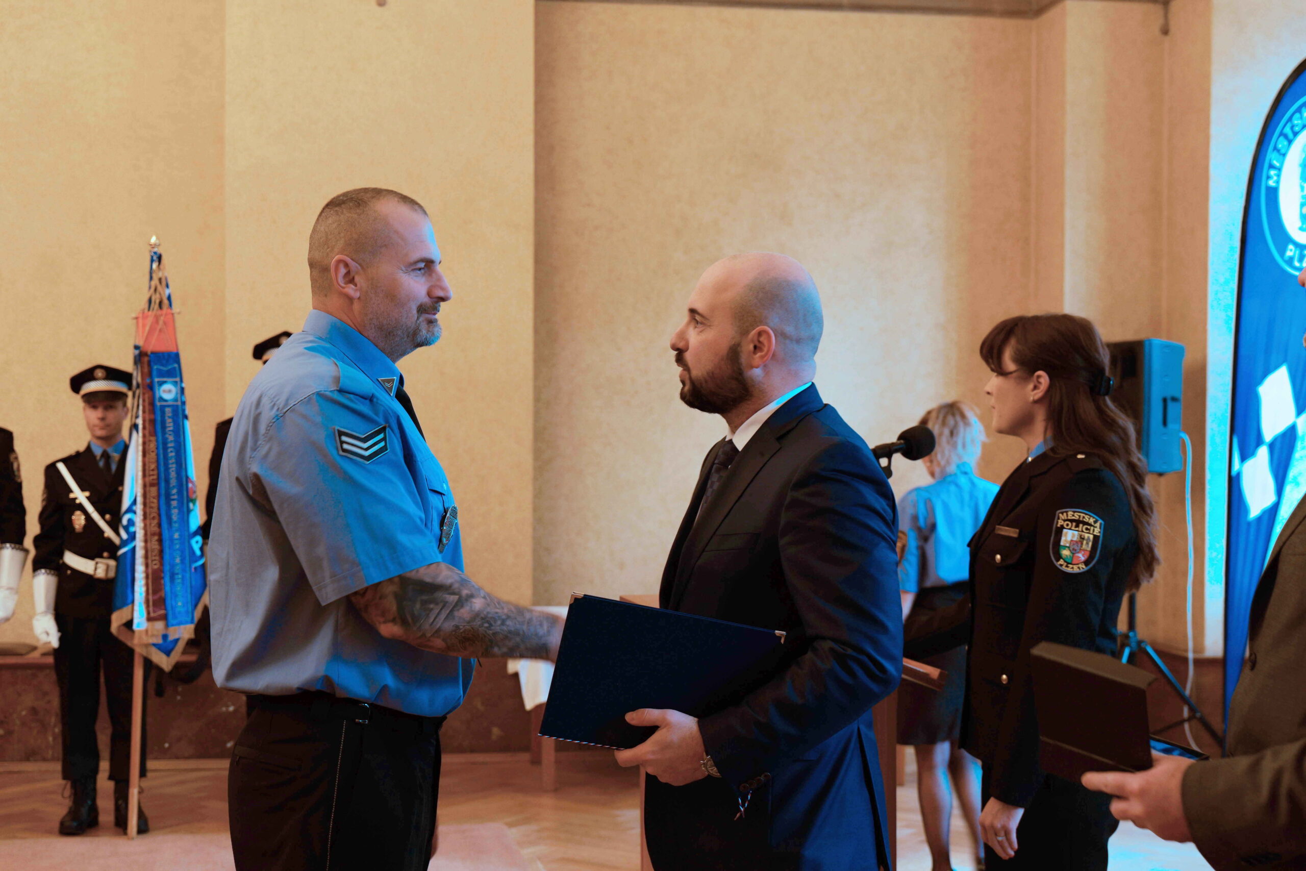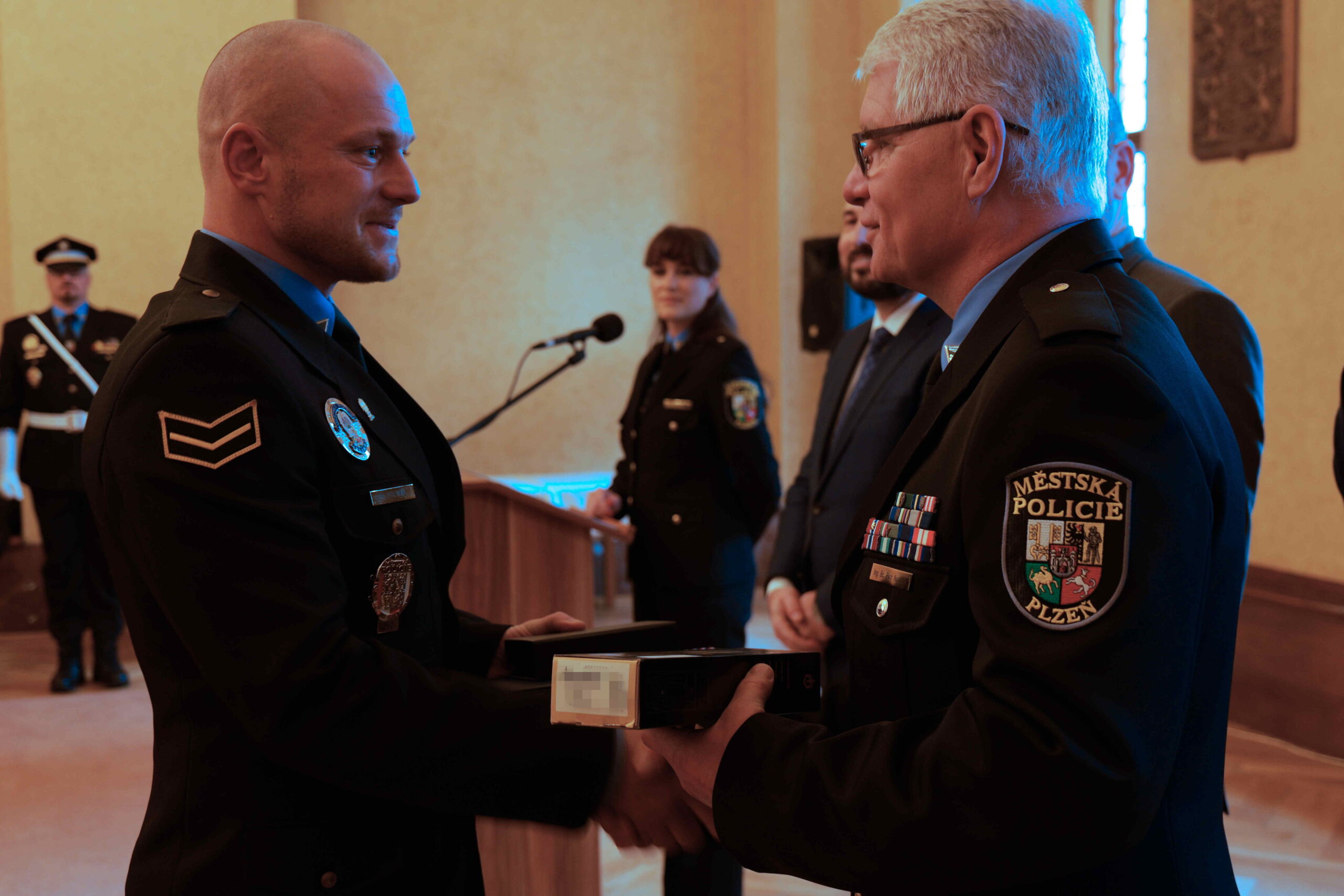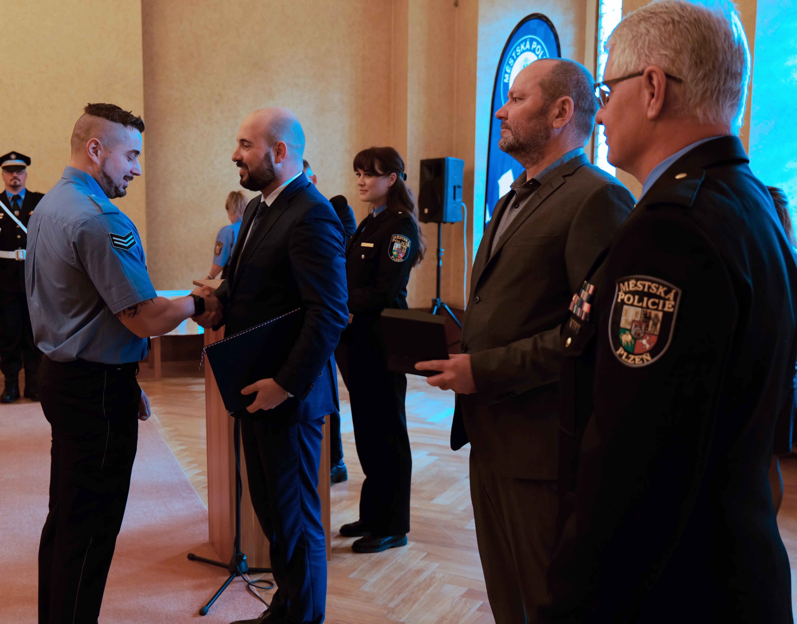 Pořádková jednotka Městské policie Plzeň slaví významné jubileum. Při příležitosti 15. výročí jejího vzniku se všichni členové sešli v Obřadní síni plzeňské radnice k předání pamětních listů, plaket a dalších ocenění.