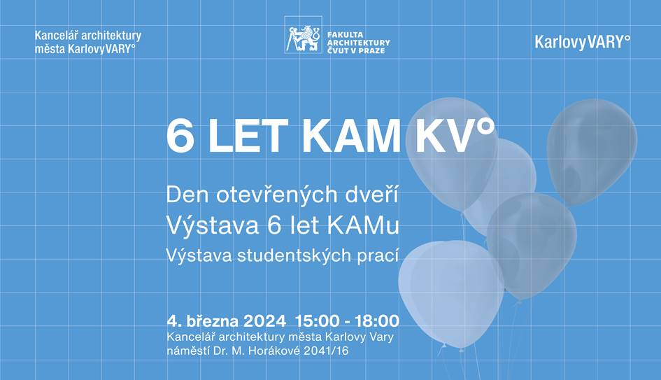 Kancelář architektury města Karlovy Vary (KAM KV°) oslaví již brzy 6 let od svého založení. Oslavte toto výročí společně s námi. Navštivte nás v pondělí 4. 3. odpoledne v našem sídle na náměstí Dr. M. Horákové. Dveře Vám budou otevřeny od 15 do 17 hodin. K dispozici Vám bude celý tým KAMu, představíme Vám, na čem pracujeme a ukážeme Vám naši kancelář. Zajímá Vás konkrétní městský projekt? Chodíte kolem, ale vlastně nevíte, čím se KAM zabývá? Přijďte si s námi popovídat.