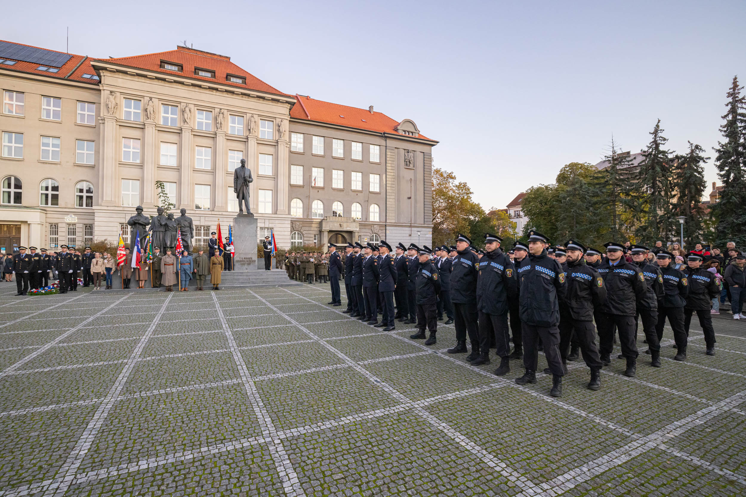 Obyvatelé Plzně si včera na náměstí T. G. Masaryka připomněli 106. výročí vzniku samostatné Československé republiky. Atmosféru podtrhl vzpomínkový akt, během kterého Čestná jednotka Městské policie Plzeň položila k pomníku věnce a 18 nových strážníků městské policie a příslušníci Hasičského záchranného sboru Plzeňského kraje složili svůj slavnostní a služební slib.