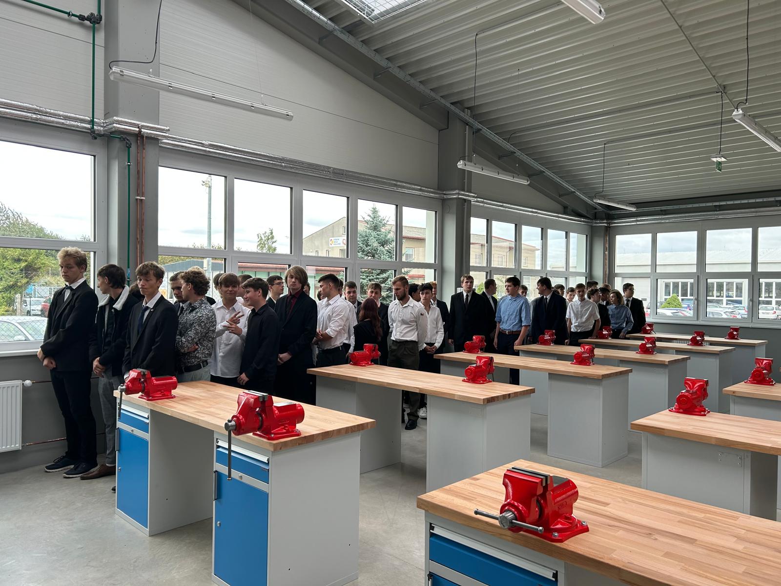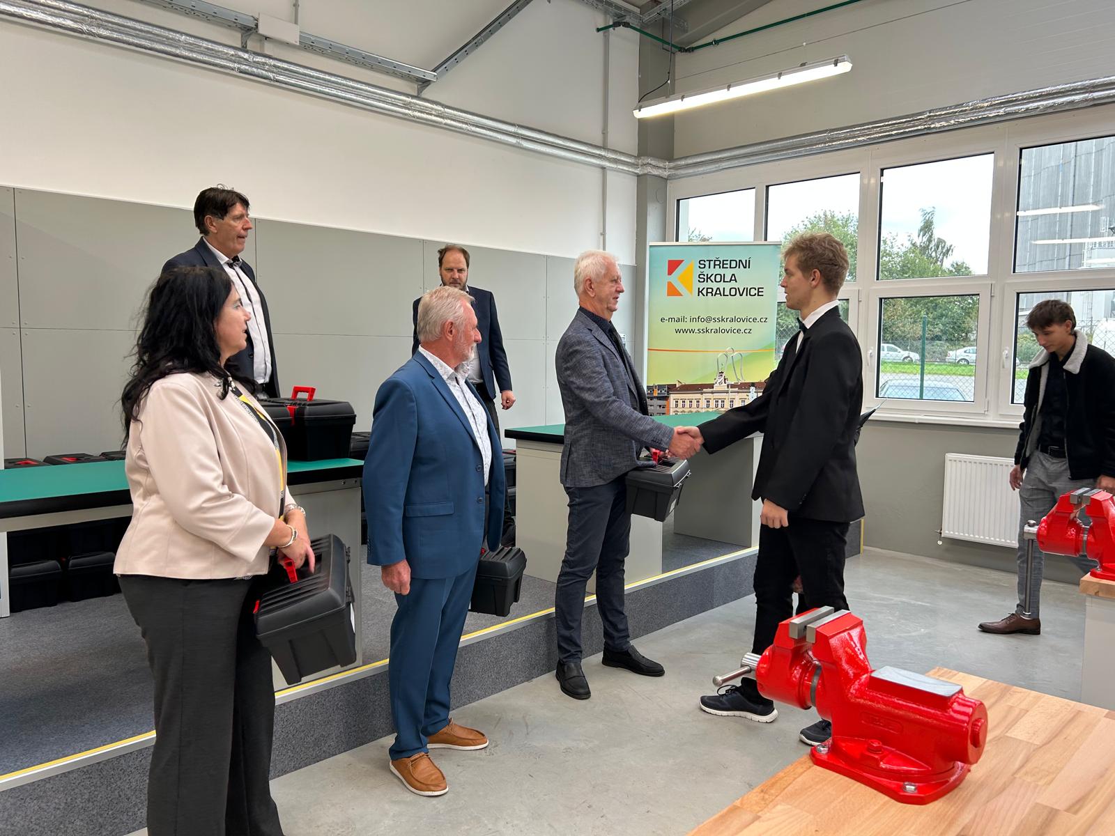 Slavnostní otevření nové haly proběhlo 24. září 2025 a při této příležitosti byly také předávány 27 budoucím automechanikům a 21 opravářům zemědělských strojů nově nastupujícím do 1. ročníku Střední školy v Kralovicích technické kufříky se sadou nářadí. „Plzeňský kraj dlouhodobě podporuje různými formami zvyšování počtu žáků v technických oborech zakončených výučním listem. Také v tomto školním roce obdrží žáci 1. ročníků středních škol zřizovaných Plzeňským krajem sady ručního nářadí, které mohou využít nejen při praktické výuce, ale i pro vlastní potřebu. Projekt je zaměřen na obory strojní, elektrotechnické, stavební a zemědělské,“ dodal náměstek hejtmana Vladimír Kroc.